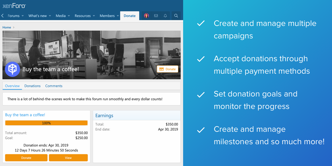 Enter [TH] Donate, a simple yet powerful donation manager. Run multiple campaigns at the same time. One for your server bill and another for that new software the community has been wanting to have.